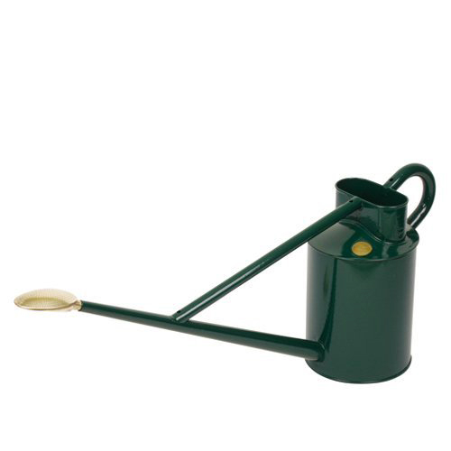 HAWS Giesskanne "Long Reach" mit ovaler Messingbrause und  Rohr-Querverstärkung. Verzinkter Stahl mit grüner Pulverbeschichtung, ca. 8,8 Liter, um 98 Euro