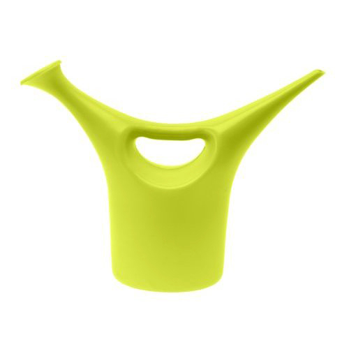 Kunststoff-Gießkanne mit zwei praktischen Seiten: schmaler Ausgießer auf der einen, Brauseausgießer auf der anderen, ca. 2 Liter, um 7 Euro