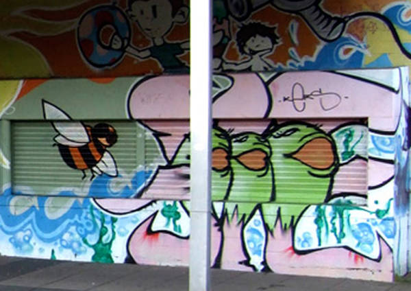 - Zwei Beispiele aus der StreetArt Aktion 5mal5 "Kiefernstraße Düsseldorf"