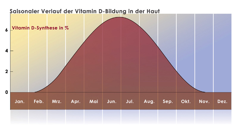 - Durch die mangelnde Sonneneinstrahlung in Deutschland Von Oktober bis März fehlt dem Körper die Sonnenkraft, Vitamin D zu synthetisieren.