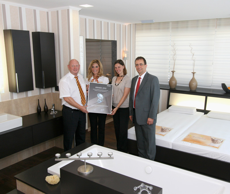 Julia Dreischulte, Produktmanagerin bei Kaldewei, überreichte zusammen mit Kaldewei Gebietsleiter Thomas Druskeit die Urkunde. „Wir freuen uns sehr, dass unsere Produkte auf eine so hochwertige Art und Weise in den Ausstellungen präsentiert werden".