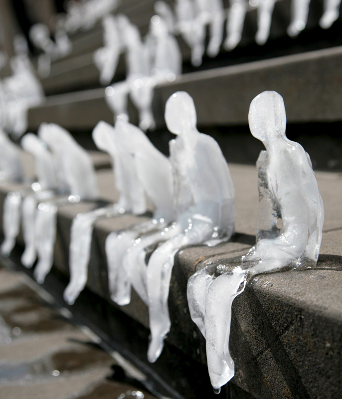 Anlässlich der Vorstellung einer Studie zur Bedeutung der Arktis und der Bedrohung der dortigen Eisschmelze für unser Klima platzierte der WWF zusammen mit ca. 300 Berlinern und Besuchern im September 2009 auf der Freitreppe des Konzerthauses am Gendarmenmarkt 1.000 handgefertigte Eisfiguren. Die kleinen, fragilen Skulpturen, geschaffen von der brasilianischen Künstlerin Néle Azevedo, schmolzen und zerfielen innerhalb von 30 Minuten auf den Stufen der Treppe. Ein eindringliches Bild für die Bedrohung des Klimawandels für Mensch und Natur. Die Künstlerin Néle Azevedo lebt und arbeitet in Sao Paulo. Sie führte ihre Eis-Intervention "Monumento Minimo", die ursprünglich als kritische Auseinandersetzung mit Monumenten im urbanen Raum gedacht war, zuvor in Brasilien, Frankreich, Japan und Italien durch. 2010 wurde das Bild der Fotografin Rosa Merk mit dem obs-Award "Das PR-Bild des Jahres 2010" ausgezeichnet!